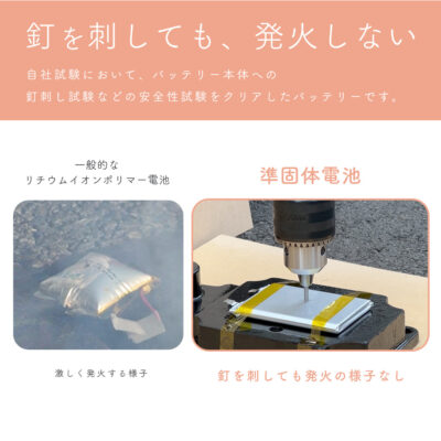 また、発火しにくい安全な準固体モバイルバッテリーだからこそ