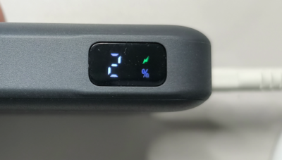 ・PD対応充電器をご使用の場合:LEDインジケータにイナズママークが点灯し、数字の1桁目が点滅します。