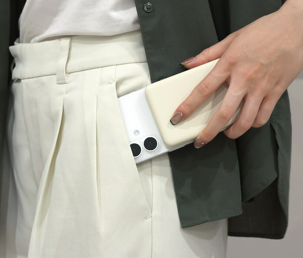 例えば、オフホワイトのワイヤレスモバイルバッテリーをスマホに装着するなら、モノトーンカラーでまとめたファッションコーディネートがおすすめです。モノトーンカラーは、男女ともに幅広い年代でファッションに取り入れやすく、洗練された雰囲気を醸し出します。