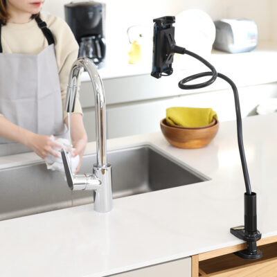 アーム型は、複数本のフレキシブルアームを使ってスマホやタブレットを固定する製品です。アーム部分は自由に折り曲げることが可能で、体勢に合わせて角度や高さを調整することができます。
