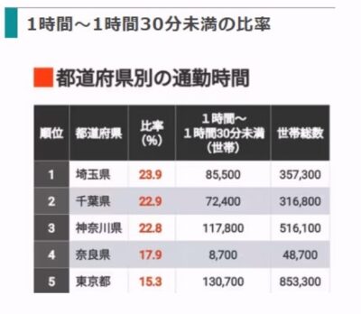 通勤時間が最も長い都道府県は埼玉県