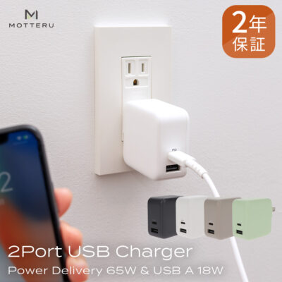 Power Delivery65W対応 USB-C×1ポート、USB-A×1ポート 合計最大63W AC充電器 かしこく充電 2年保証 MOT-ACPD65WU1