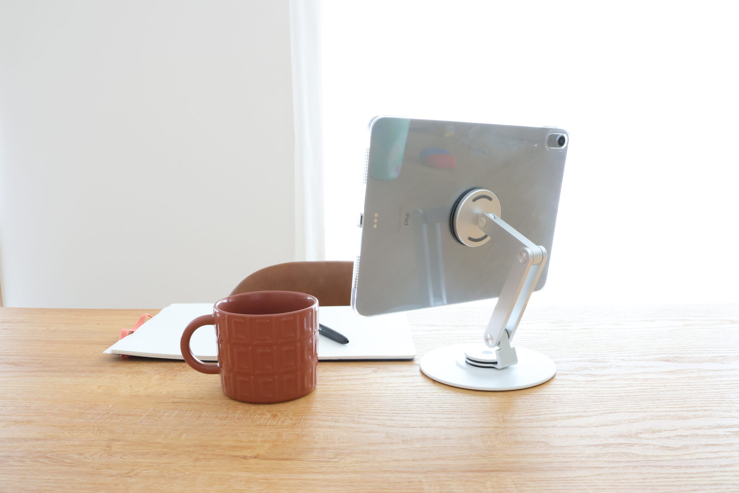 ・マグネットでピタッと固定できるスマートフォン、タブレットスタンド