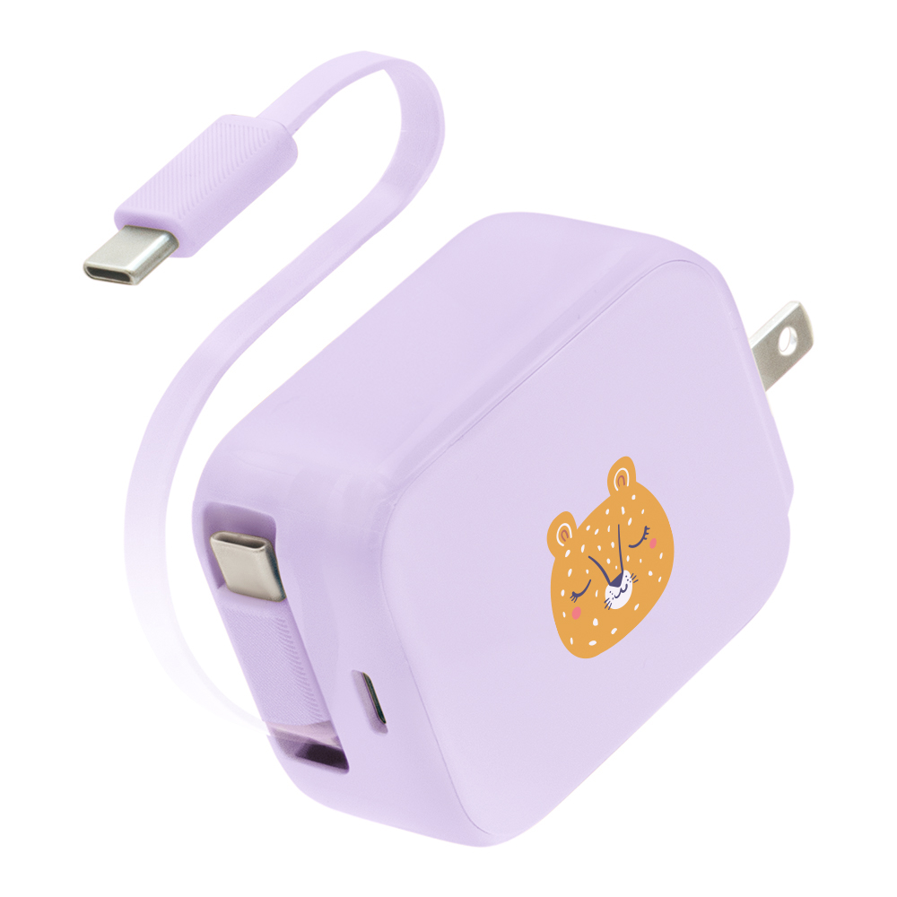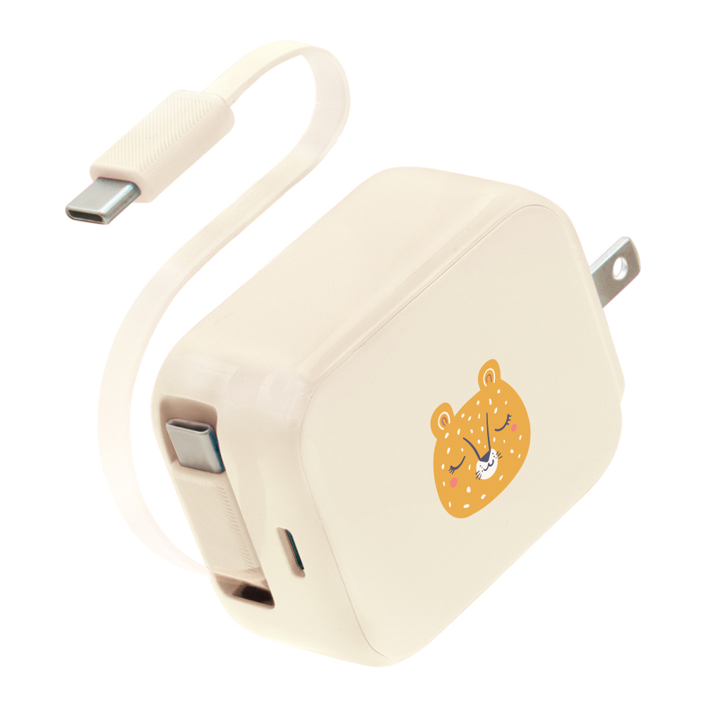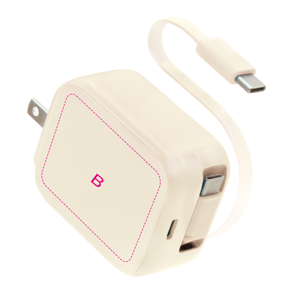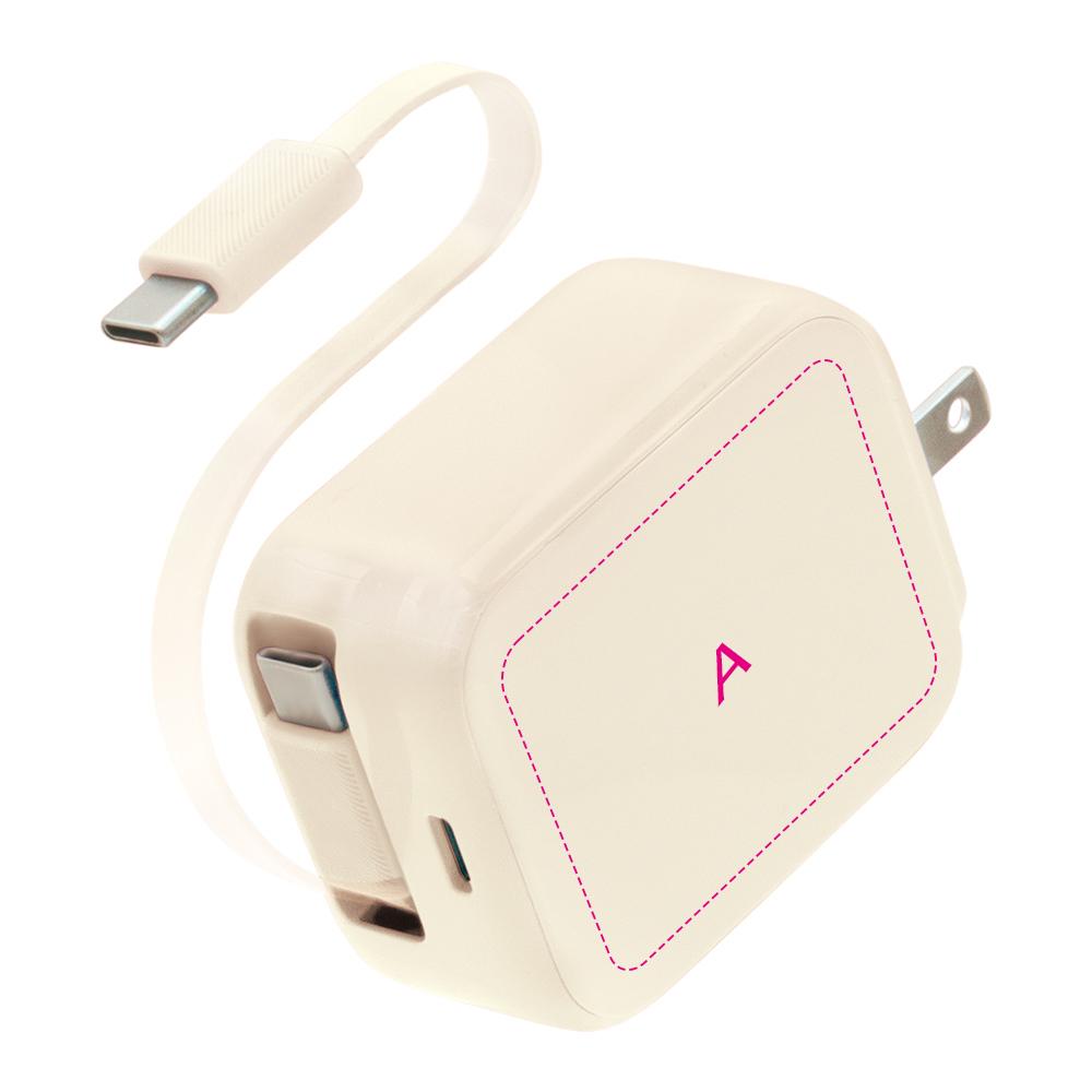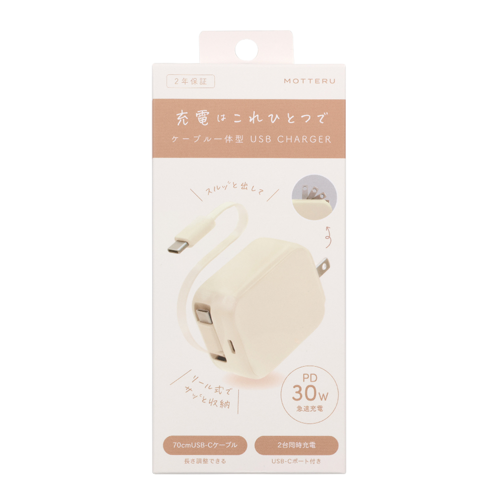 もうケーブルは忘れない&絡まるストレスフリー 巻取り式USB-Cケーブル(70cm)一体型の充電器。