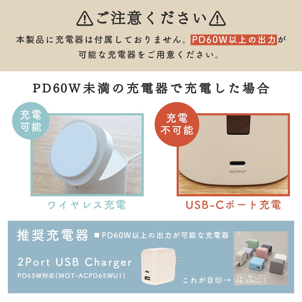 出力仕様 | Qi2ワイヤレス出力:5W、7.5W、10W、15W Apple Watch充電:5W(急速充電対応) ワイヤレスイヤホン充電:5W Type-C出力ポート:5V3A,9V3A,12V2.5A,15V2A[最大PD30W] |