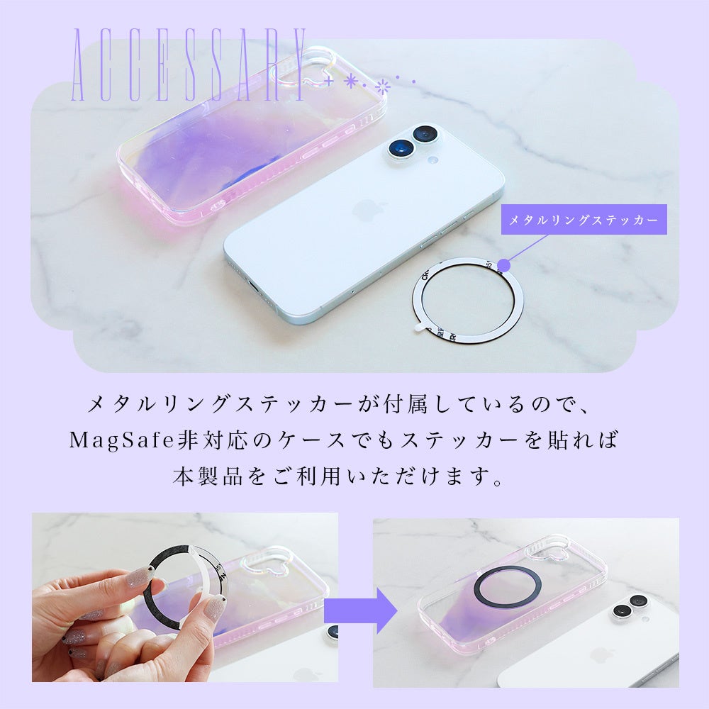 メタルリングステッカーが付属しているのでMagSafe非対応のスマホ、ケースでもご利用いただけます。