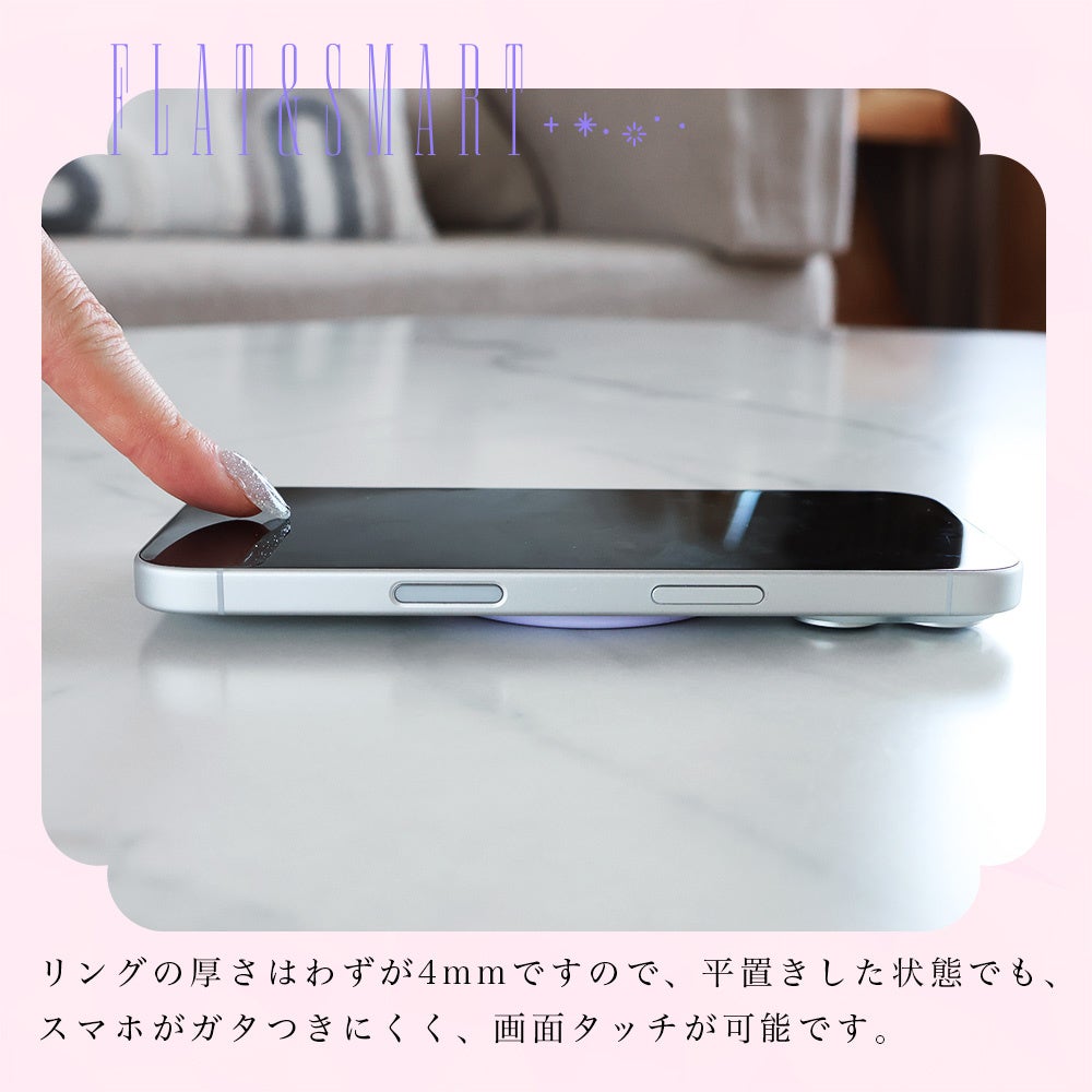 リングの厚さはわずが4mmですので、平置きした状態でも安定性が高く、スマートフォンの操作もなめらかにできます。